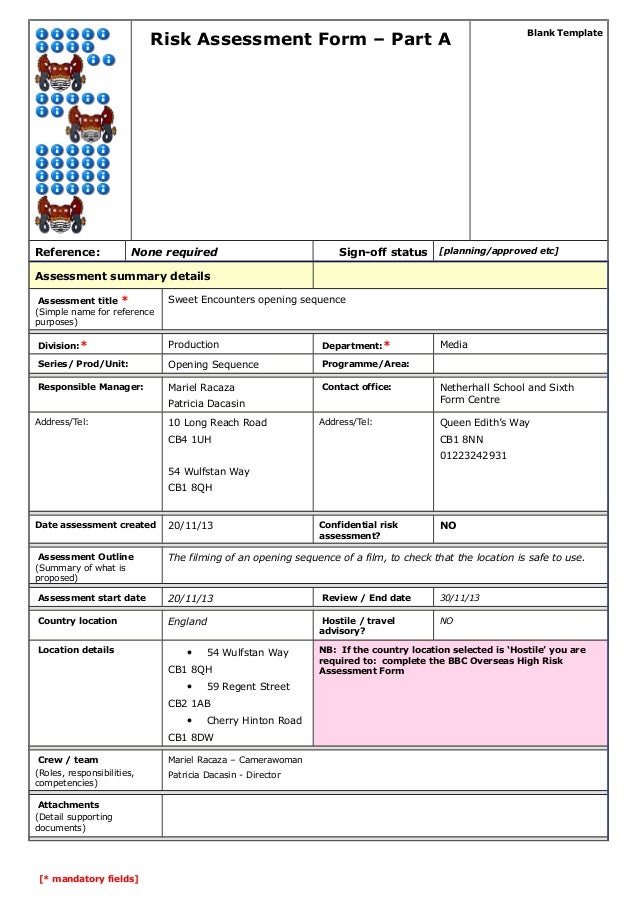If you are sure that there are no fire However, templates are suggested for error free ready formats, which you will get free to use from online resources. The fire risk assessment form is completely dedicated to the checking of fire hazards in any organization. Risk Assessment Forms Example risk assessment templates These completed examples from UK Health… The principals of risk assessment are One of the main complaints we get from employees and contractors during the interview phase of safety audits is that when they report something, like a.