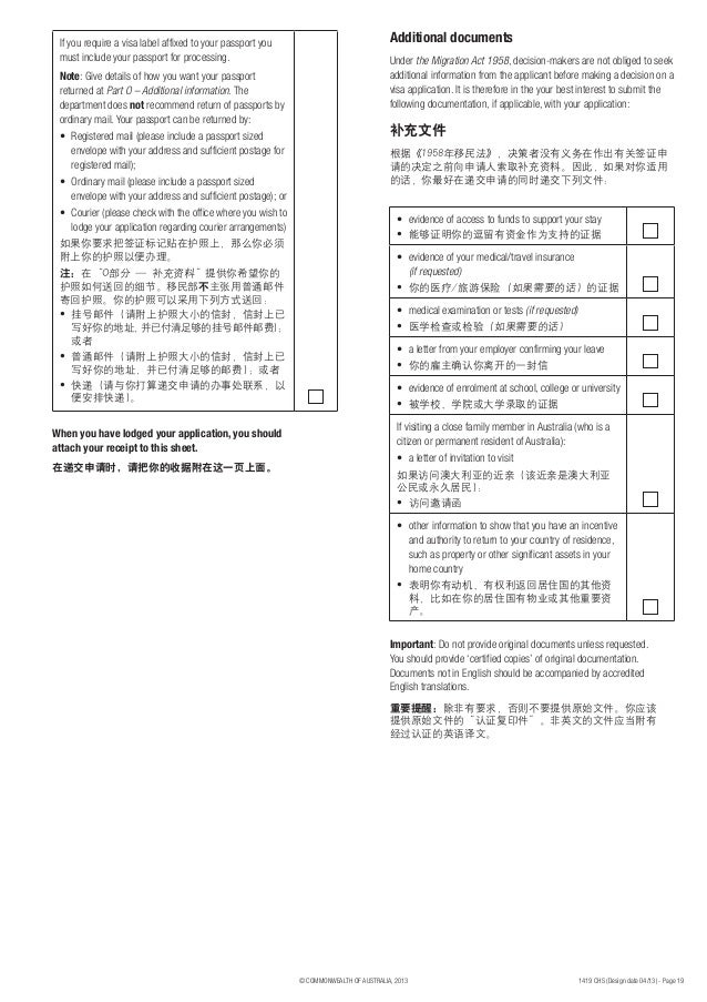 Australian Tourist Visa Form 1419 - Forms #OTI5NA | Resume ...