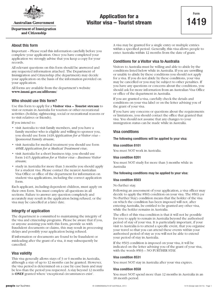 Australian Visa Application Form 1418 Download. Start a free trial now to save yourself time and money! False or misleading information may lead to refusal or cancellation of.