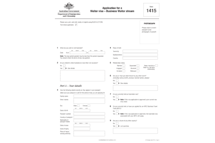 Australian Tourist Visa Form 1419 - Forms #OTI5NA | Resume ...