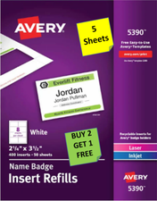 [5 Sheets] Avery 5390 White Cardstock Name Badge Inserts ...