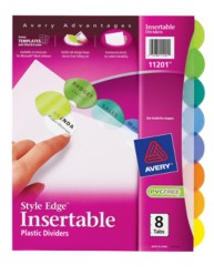Avery 8 Tab Insertable Divider Template. Special tab design allows easy insertion and removal, but White or buff paper dividers with clear or multicolor insertable tabs. Tab inserts from the side provide a large print area and secure fit.