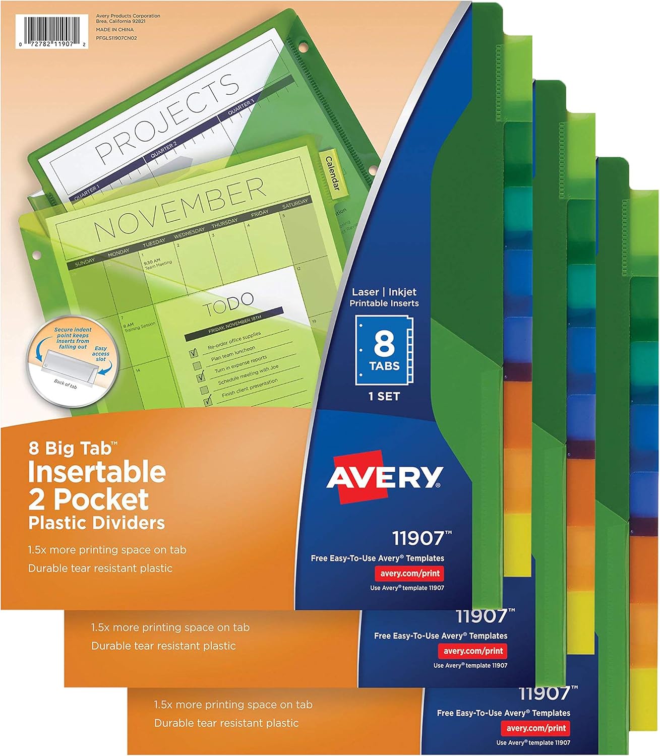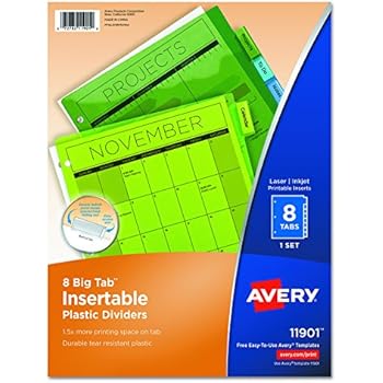 Avery Big Tab Template 11907. Durable plastic dividers with two pockets and bigger tabs for more efficient organization. Avery Big Tab Insertable. has been added to your Cart.