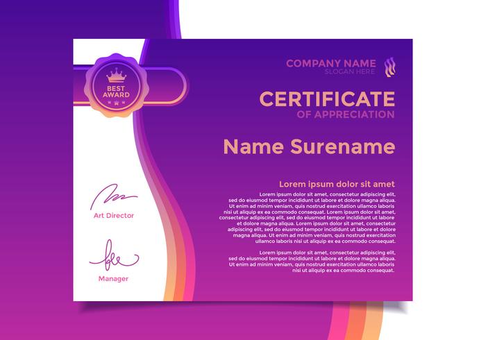 Appreciation Certificate Template Vector. Our certificate of appreciation templates have these basic components that can make customization of one not to be a hard task as you will only have to add a few more specific components. Our certificate of appreciation templates have been designed to cater for most of your concerns or needs.