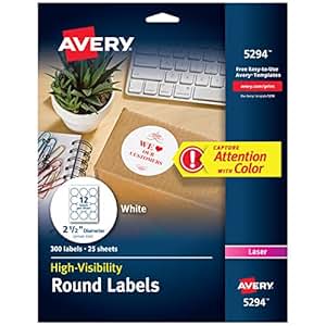 Amazon.com : Avery High-Visibility White 2.5 Round Labels ...