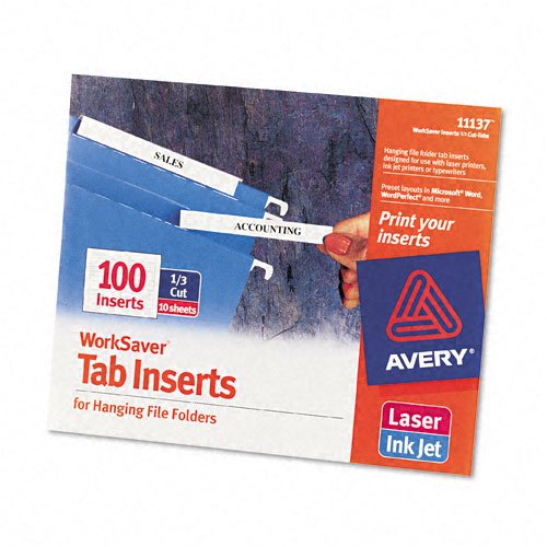 Avery Tabs Inserts For Hanging File Folders, 1/5-Cut Tabs ...