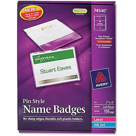 Avery Pin Style Name Badge Holders 74540 w/Laser/Inkjet ...
