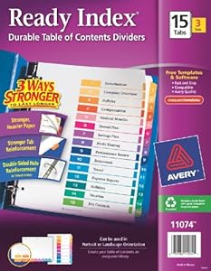 Avery Ready Index 12 Tab Color Template. LD Products has supplies for your office, school and home! Simply print the section titles onto the Table of Contents Professional colors and upscale design.