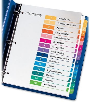 Avery® Ready Index® Table of Contents Dividers 11143, 15 ...
