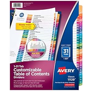 Amazon.com : Avery Ready Index Table of Contents Dividers ...