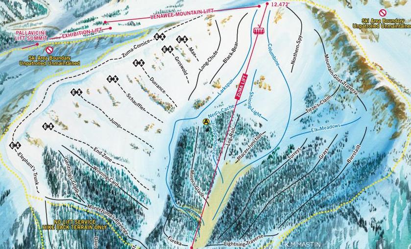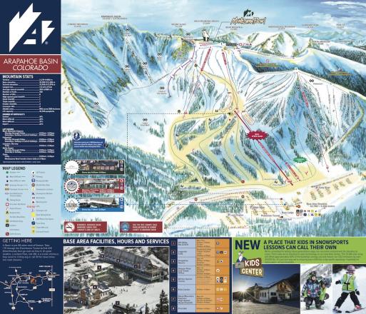 Arapahoe Basin Trail Map. Choose resort Arapahoe Basin Aspen Aspen Highlands Beaver Creek Breckenridge Buttermilk Copper Mountain Crested Butte Cuchara Mountain Durango Mountain Resort Echo Mountain Eldora Mountain. We were also able to confirm Arapahoe Basin's reputation of being one of the most challenging ski areas in the US.