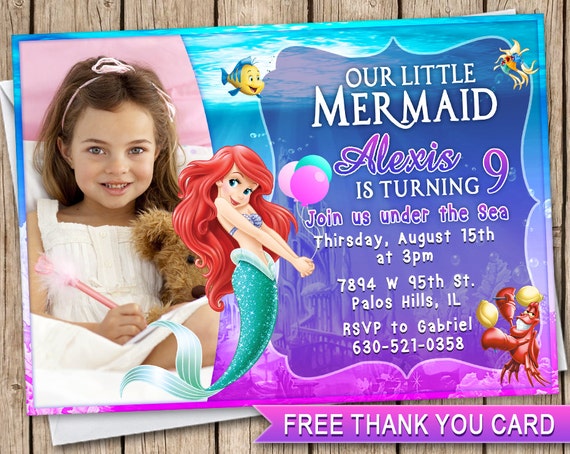 Little Mermaid Ariel Photo card Birthday invitation Printable