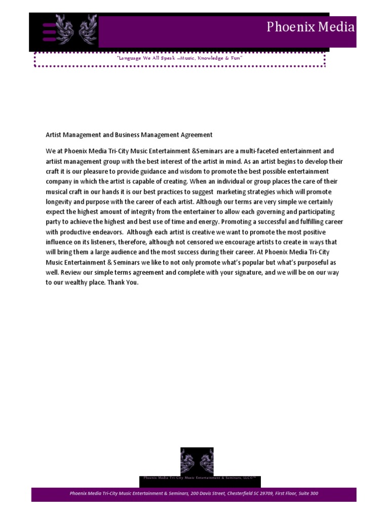 Are you managing an Artist and do you need a simple Artist Management Agreement? Management contracts can involve the accomplishment of business tasks as well as. A "personal manager," usually referred to as the artist's "manager," is one of the most important individuals in an artist's career.