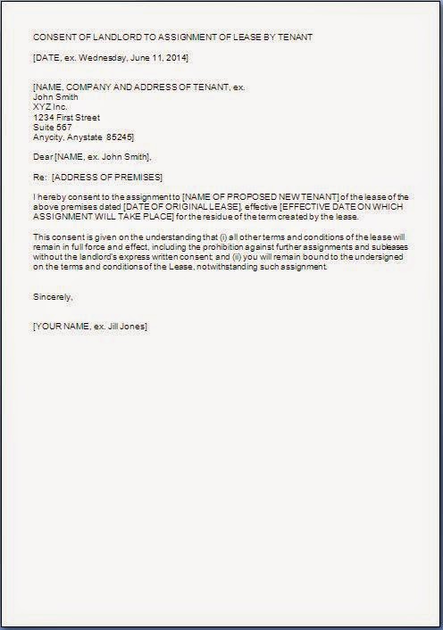 Here is a sample of letter of consent written by the landlord to his tenant allowing the proposal for assignment to a new tenant.
