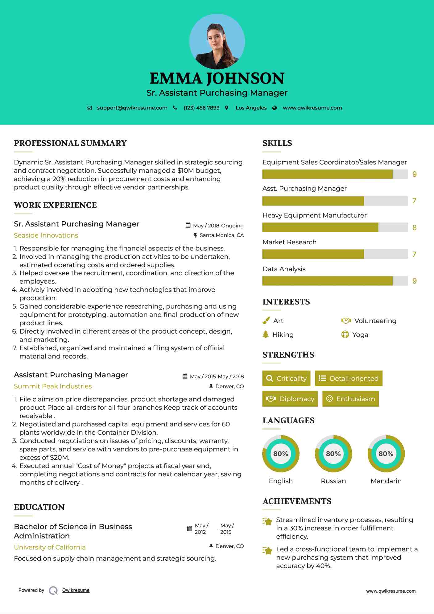 Assistant purchasing manager cv sample July 2020 (Verna Torres)